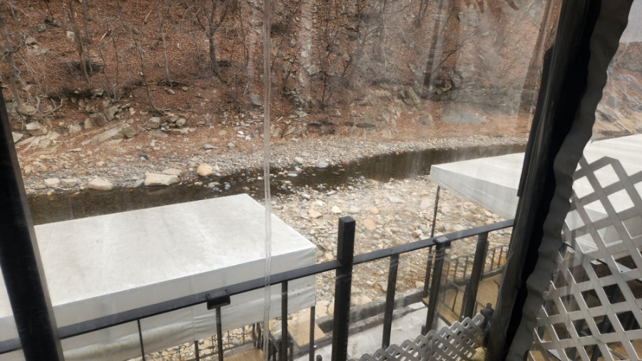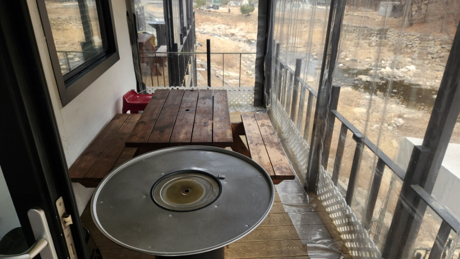 테라스 또한 세 방향 방한 비닐로 커버가 되어있어 한 겨울에도 따뜻하게 바베큐를 즐길 수 있었습니다.