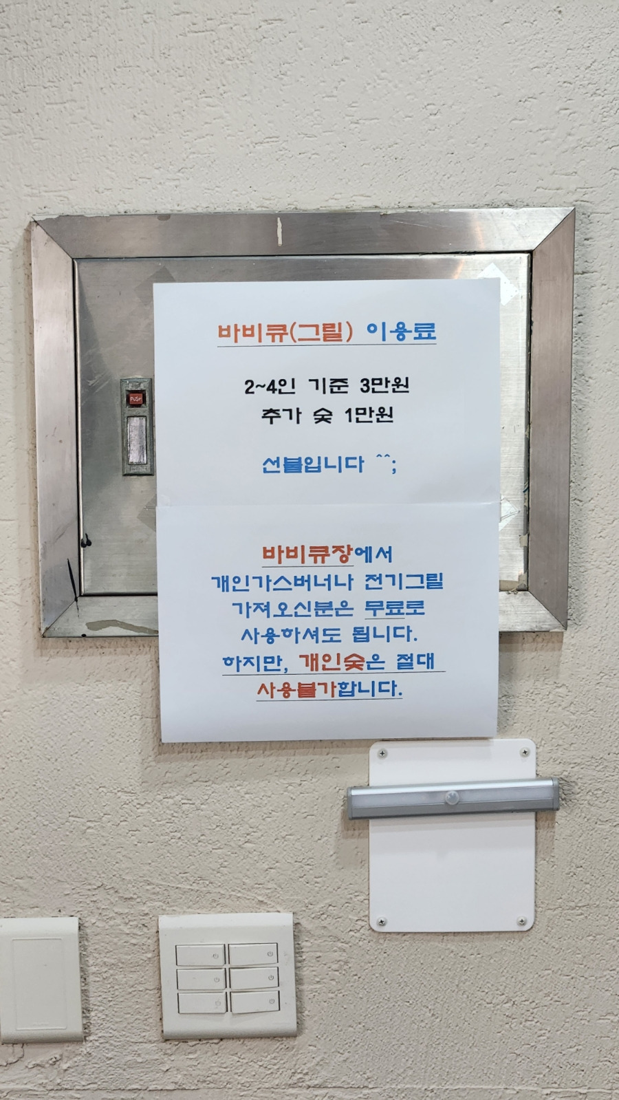 그리고 개인 숯만 아니면 다른 기타 장비(가스버너, 전기 그릴)를 이용해 식사를 즐길 수 있다니 합리적인 부분이 아닐까 하네요.