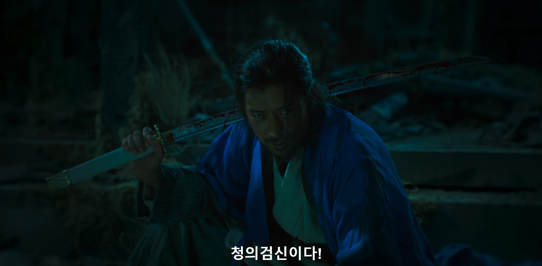 왜군들이 '강동원'의 모습을 보고 청의검신이라고 하며 놀라는 것으로 보아 푸른 옷을 입고 의병활동을 하는 그리고 왜군들에게 공포의 대상이 된 걸 확인할 수 있는데요.