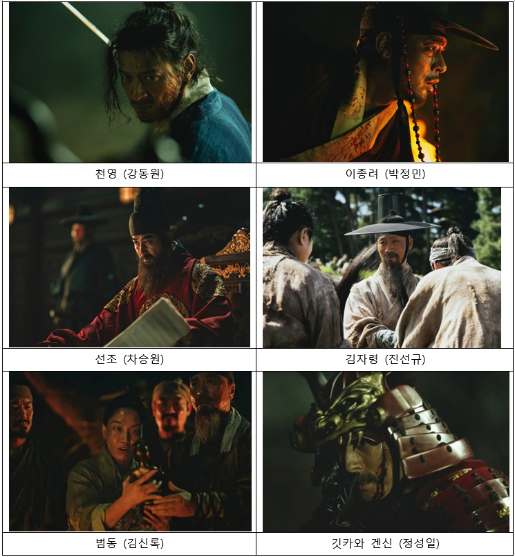 영화 '전,란'의 캐스팅은 정말로 화려했습니다. '천영' 역을 맡은 강동원을 시작으로 무능력한 왕 선조를 연기한 '차승원' 그리고 '천영'의 라이벌인 '이종려'역을 맡은 박정민까지.... 연기력에서 만큼은 뭐 하나 까내릴 배우가 하나도 없었지요.
