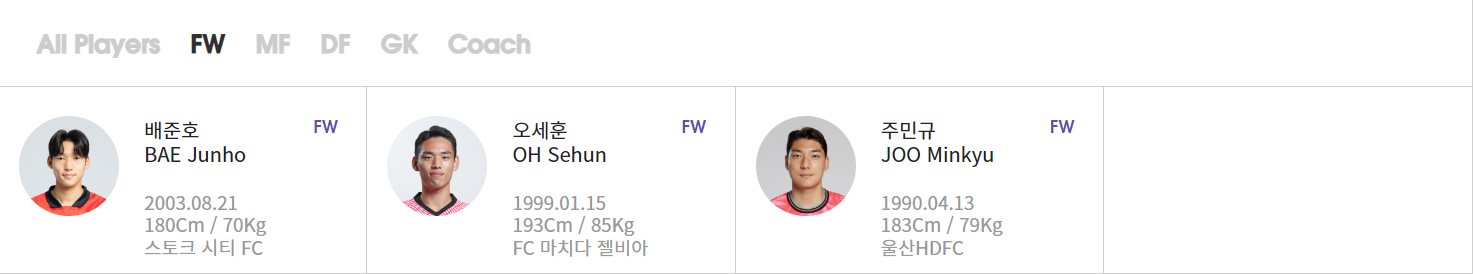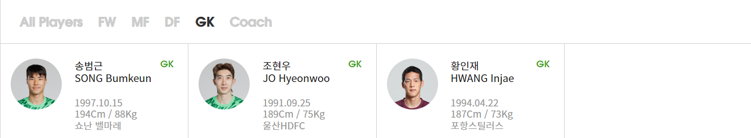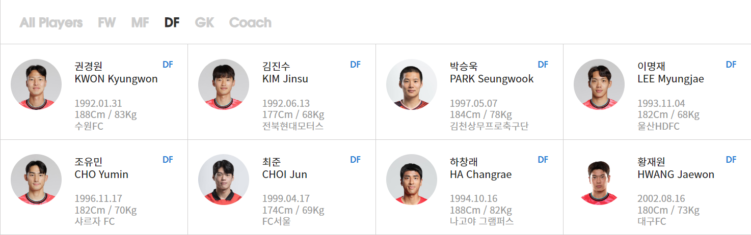 또한 새로이 눈이 들어오는 선수들도 있습니다. 바로 '황인재', '박승욱', '하창래' 선수입니다. 총 7명의 선수가 이번 A대표팀에 처음으로 발탁되었네요.
