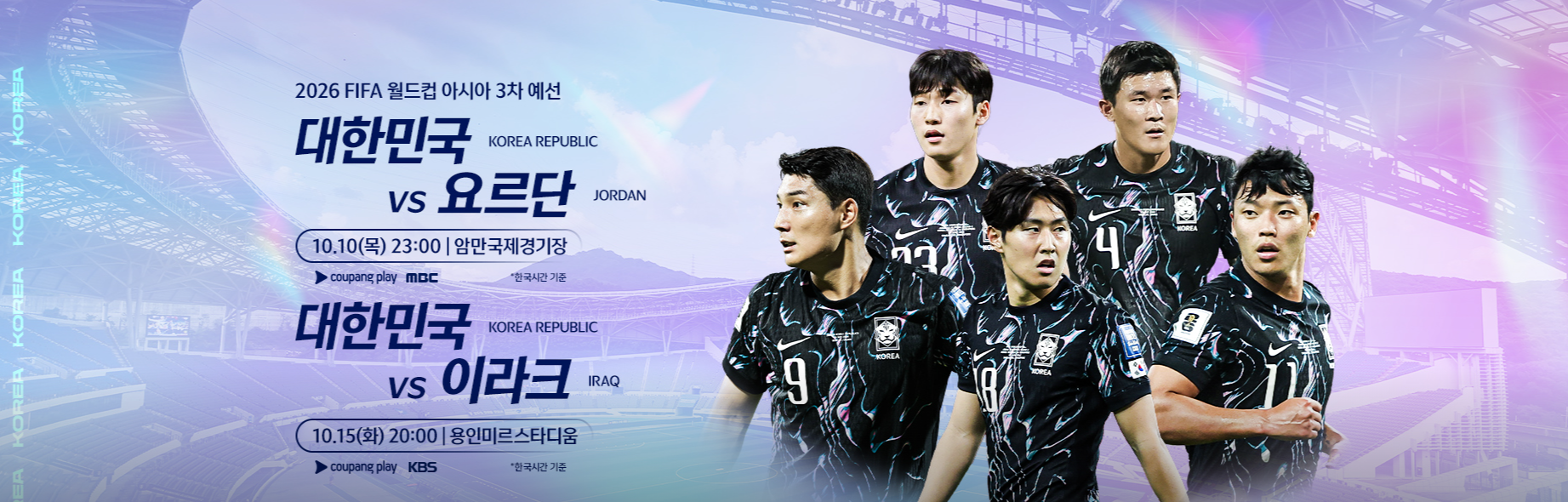 대한민국과 요르단의 월드컵 3차 예선전 경기는 밤 11시 쿠팡플레이에서 생중계 됩니다.