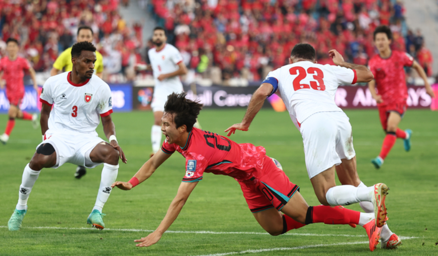 이렇게 좋은 경기 결과만 있었던 아니었지요. 요르단 선수들의 거친 태클들로 경기 초반부터 우리나라 선수들이 그라운드에 뒹구는 모습이 자주 보였고 결국에는 황희찬과 엄지성이 부상으로 교체되는 안타까운 일도 발생하였습니다.