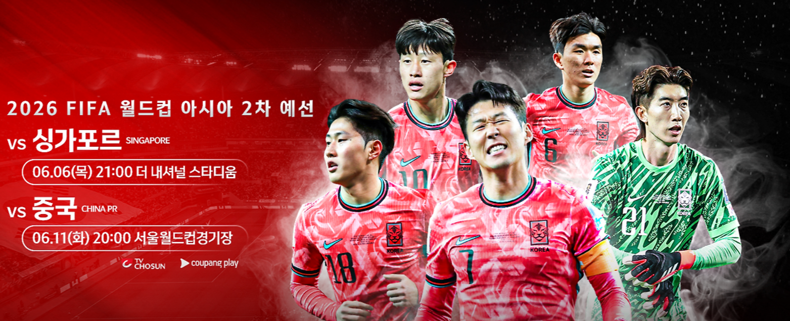 이번 대한민국과 중국전 경기는 쿠팡플레이, TV조선에서 생중계를 볼 수 있습니다.