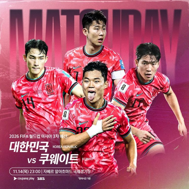 11월 14일 대한민국 축구 대표팀이 월드컵 아시아 3차 예선 경기를 쿠웨이트홈에서부터 시작합니다.