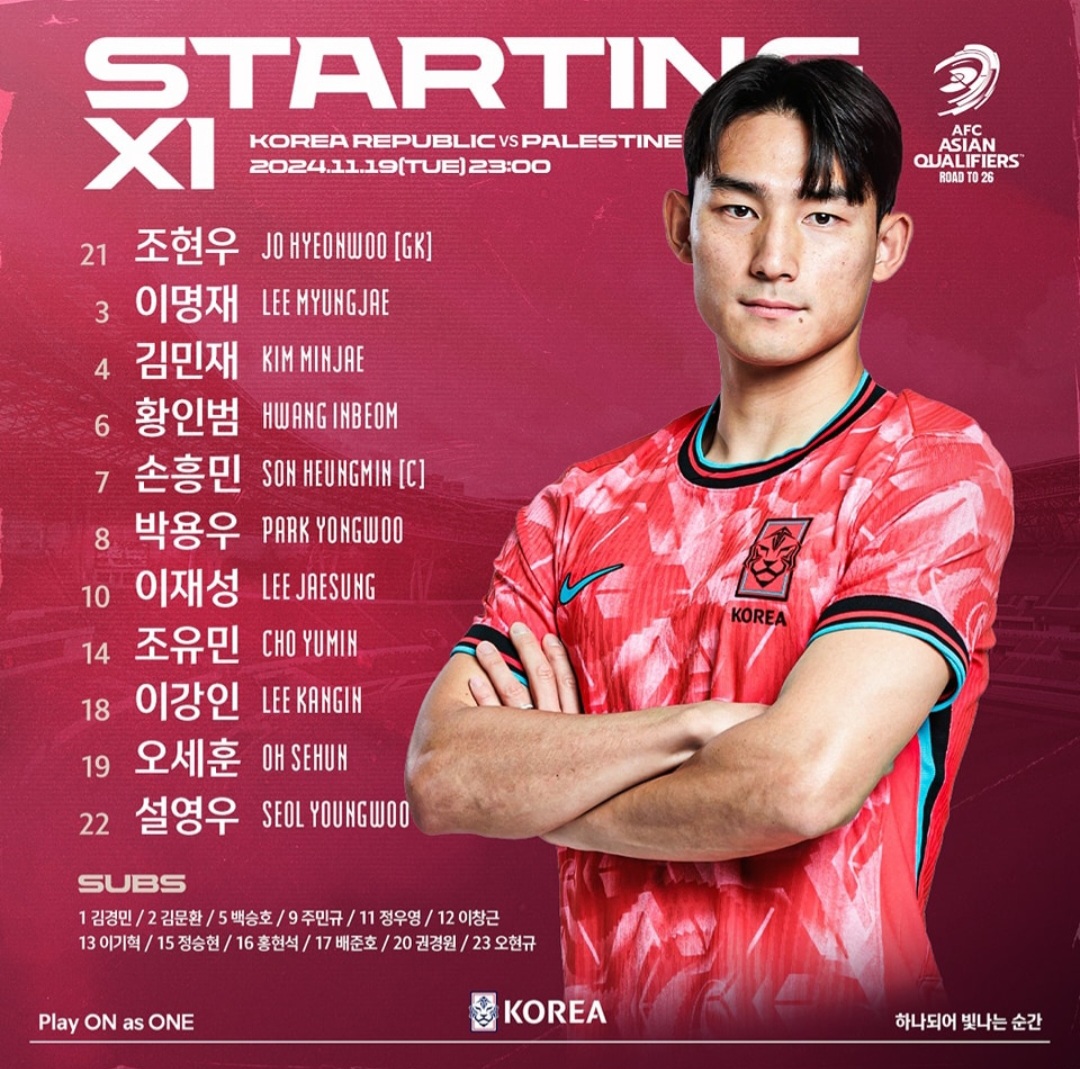 선발명단은 직전 경기인 쿠웨이트 전과 같은 라인업을 구성하였습니다. 하나부터 열까지 똑같았지요.