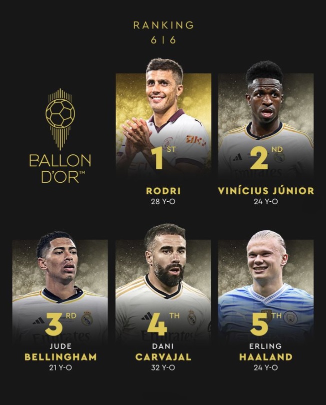 드디어 2024 발롱도르 수상자가 탄생했습니다. 주인공은 바로 맨시티 승리의 요정 '로드리'입니다. '메시'와 '호날두'의 시대가 저물고 2024 발롱도르는 누가 받을지 궁금증이 정말로 컸었지요??? 항간에는 '비니시우스'가 받을 거라는 말이 정말로 많았지만 '로드리'의 아성을 넘어서진 못했네요.