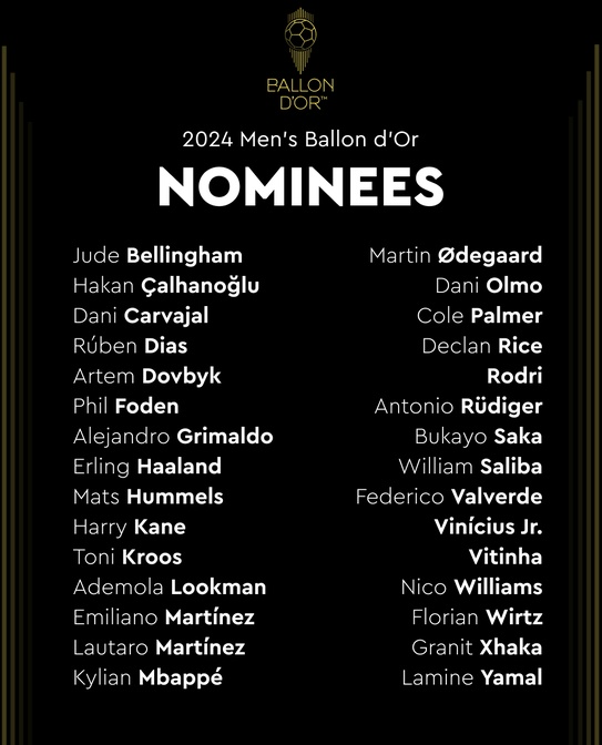 발롱도르를 주관하는 "프랑스 풋볼"은 한국시간으로 9월 5일 2024 발롱도르 후보 30인을 발표했는데요.