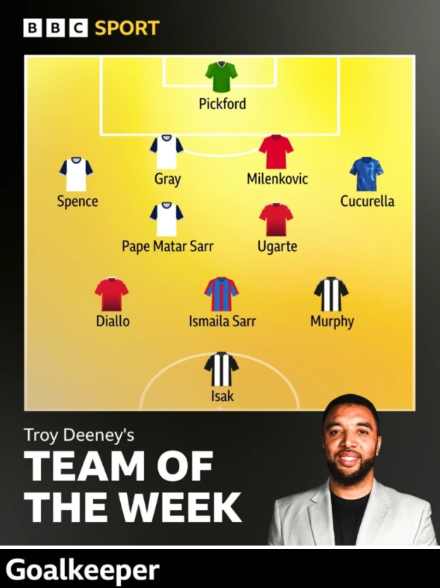 수비수 : 루이스 홀(뉴캐슬), 막상스 라크로아(크리스탈 펠리스), 니콜라 밀렌코비치(노팅엄)