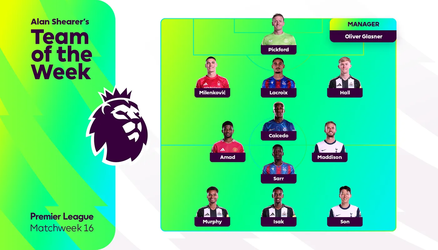 미드필더 : 제임스 매디슨(토트넘), 모이세스 카이세도(첼시), 아마드 디알로(맨유), 이스마일라 사르(크리스탈 펠리스)