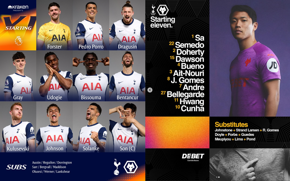 토트넘은 홈에서 '황희찬'에게 선제골을 얻어 맞고 전반전에 동점골 및 역전골을 성공시켰습니다.