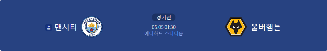 현재 리그 11위에 머물고 있는 울버햄튼은 이번 경기를 승리하게 되면 최대 9위까지 도약이 가능하기에 승점 3점이 절실할 텐데요. 단 울버햄튼은 강등권에서도 탈출을 하였고 유럽대항전에서 일치감치 멀어짐에 따라 맨체스터시티보다 동기부여가 덜할것으로 생각되어집니다. 이 또한 이번 경기의 변수로 작용하지 않을까 조심스래 예측해 봅니다.