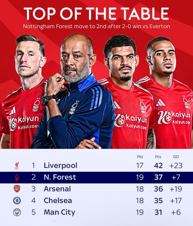 이번시즌 노팅엄 포레스트의 활약은 정말이지.... 미쳤습니다. 23-24 시즌만 하더라도 최종 순위 17위에 오르며 간신히 강등탈출에 성공하였지만 이번시즌은 '누누'감독과 '크리스 우드'의 활약에 힘입어 리버풀에 이어 2위에 머물고 있습니다.