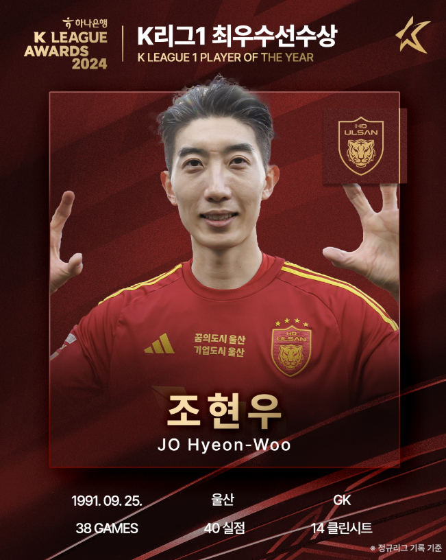 이번 MVP는 울산 HD 소속의 '조현우'가 차지했습니다. 솔직히 '조현우' 아니면 수상할 사람이 없긴 하였지요. 특출 나게 득점을 많이 한 선수도 없었고 다른 눈에 띄는 활약을 보여준 선수도 없었으니깐요.
