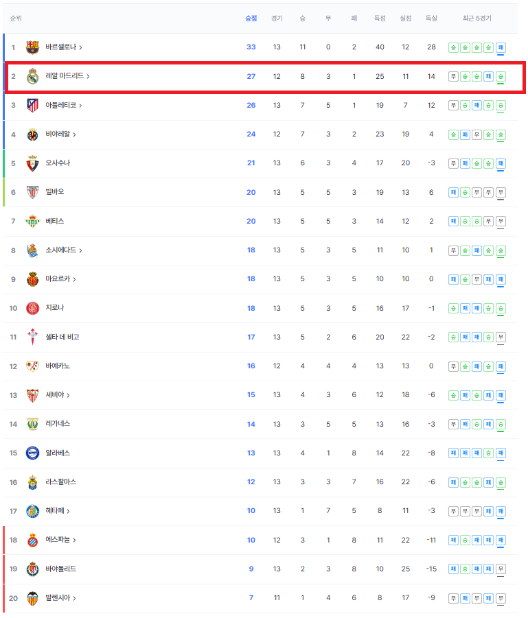 라리가 13라운드가 지난 지금 레알마드리드는 바르셀로나에 이어 리그 2위에 머물고 있는데요. 작년 시즌 레알마드리드의 순위와는 다르게 무승부가 많아 승점 획득에 어려움을 겪고 있습니다. '음바페'와 기존 레알 마드리드의 호흡 문제라던가 '벨링엄'의 득점 가뭄 등등... 여러 가지 내부 문제로 인해 어려움을 겪고 있는데요.