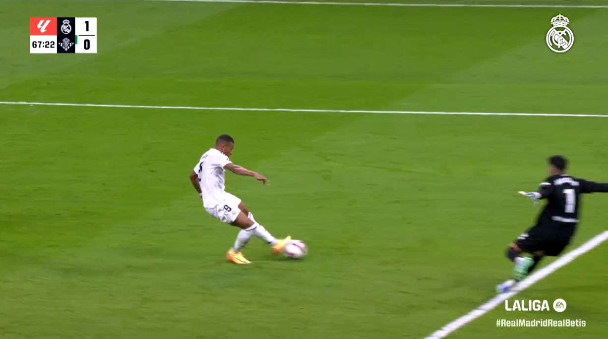 후반 22분 '음바페'는 '발베르데'의 백힐 패스를 재빠르게 이어받아 선제골을 넣었습니다.