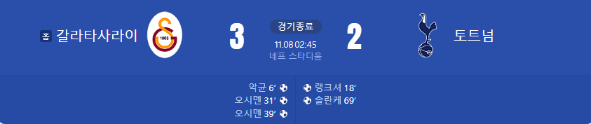 토트넘과 갈라타사라이가 11월 8일 갈라타사라이의 홈에서 유로파 리그 경기가 진행되었습니다.